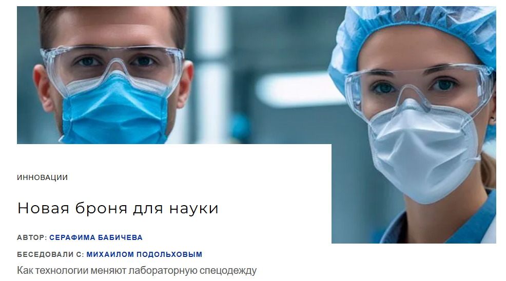 Материал получил название "Новая броня для науки. Как технологии меняют лабораторную спецодежду".
